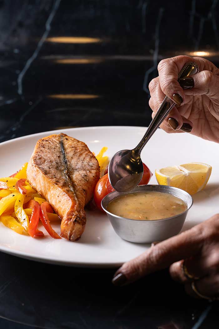 בתפריט תמצאו מבחר גדול של בשרים מובחרים, דגים, פירות ים ו־14 סלטי בית מרהיבים.